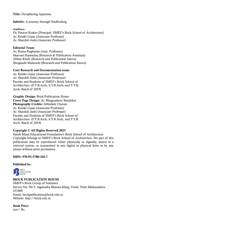 The first publication by the Brick Publication House, of SMEF's Brick School of Architecture, Pune, is a narrative documentation of the vernacular settlements of regions across the Konkan belt in Maharashtra.